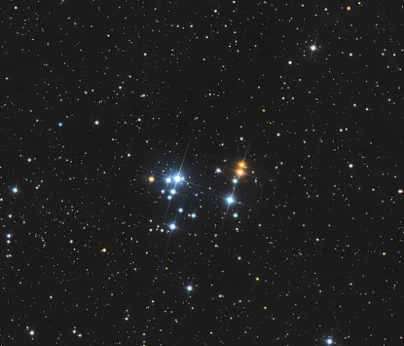 Located approximately3,600 light-years away, NGC 2169 is a young, distant open cluster that has captured the imagination of stargazers for centuries due to its unmistakable and memorable “37” shape. It’s a rewarding target for amateur astronomers and a valuable object of study for scientists, serving as a perfect laboratory for investigating the early lives of hot, massive stars.