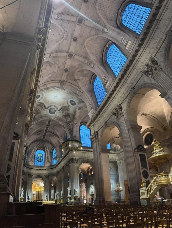 Within these few streets, you’re spoilt for monuments and historic sites. We enjoyed the magnificent Église Saint-Sulpice, the second largest church in Paris, which served as the temporary cathedral for major ceremonies while Notre-Dame was closed. With its mix of baroque and classical styles, gorgeous side-chapels and enigmatic gnomon (a type of sundial) featured in the Da Vinci Code, it’s an awe-inspiring piece of architecture. Or stroll to the Musée de Cluny, a light-filled building entirely redesigned in 2015, displaying an astonishing range of artefacts, tapestries, jewels, paintings, statues and stained glass from Gallo-Roman antiquity to the Renaissance. In the quiet of January, we had the place to ourselves. It felt like a private viewing.