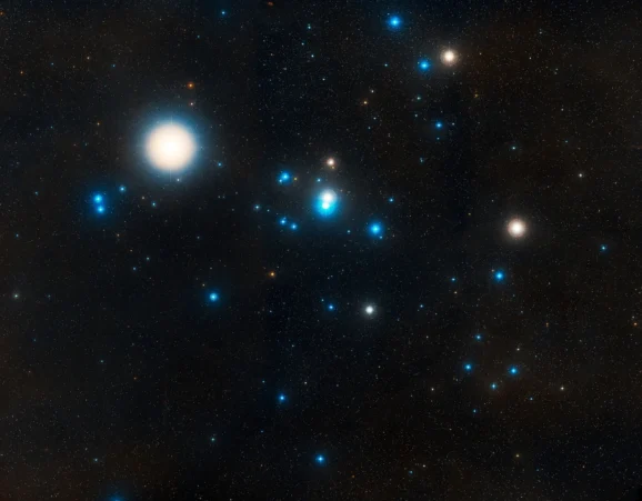 Located 150 light-years away, the Hyades is the closest and most studied open cluster in the sky, serving as a fundamental reference point for astronomy while being a beautiful naked-eye object. Within the Taurus constellation, they form the distinct V-shaped face of the Bull, with the bright red giant Aldebaran marking the Bull’s eye.