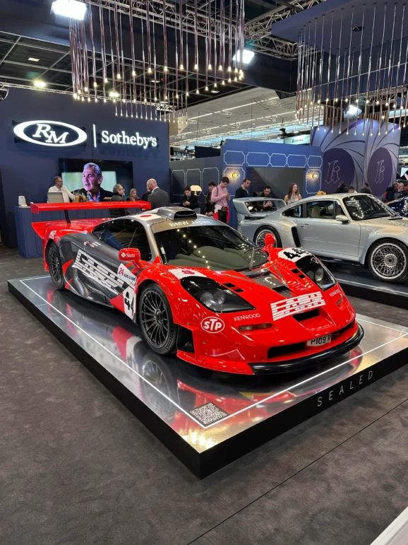 At the centre of the RM Sotheby’s Private Sales stand stood four performance icons worth more than €34 million, forming a kind of automotive altar. Another McLaren F1 GTR Longtail, Ayrton Senna’s Lotus 98T that shimmered like a black‑and‑gold apparition, a 1962 Ferrari 250 GT SWB Berlinetta, restored to a breathtaking standard in Blu Notte Metallizzato over Rosso leather and finally a shimmering sliver Porsche 911 re-imagined by Singer to DLS Turbo status completed the quartet. It was less a display and more a pilgrimage site, a place where collectors, dreamers and historians gathered in quiet awe.