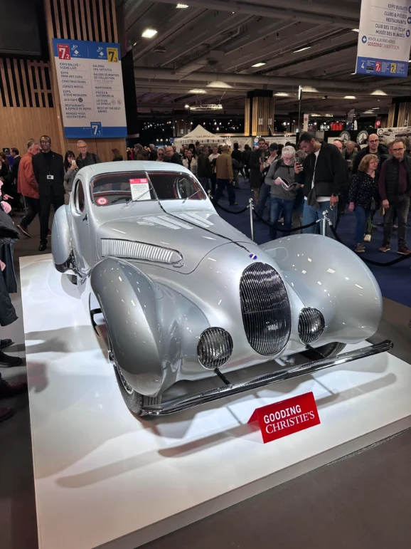 Inside Hall 7, the transformation was immediate. The ground floor, traditionally the domain of traders and specialists, had taken on the energy of a marketplace at the height of a boom cycle. Gooding Christie’s, now the official show auction house, anchored the space with a selection of blue‑chip machinery, including a 1938 Talbot-Lago T150 C-SS Teardrop Coupe that drew a constant crowd. Yet even this jewel was momentarily overshadowed by the Bugatti Railcar, a relic of Ettore Bugatti’s audacious imagination, flanked by 8 Bugatti rarities from the Musée National de l’Automobile. The railcar’s presence was a reminder that automotive history is not merely preserved but staged, and that Retromobile remains its most theatrical setting.