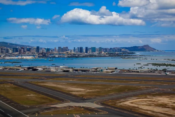 Daniel K. Inouye International Airport in Hawaii shared 10th place on 68. The landing offers wide views of the Pacific Ocean, with the approach over water giving passengers the impression of landing in the sea.
